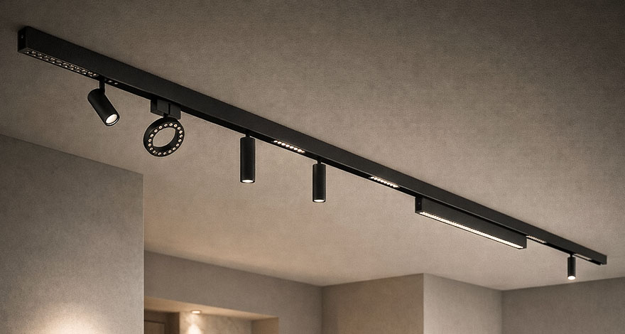 Magnetic track lighting offers a modular, flexible solution for modern spaces. Fixtures snap in place so you can add, move, or remove lights without extra rewiring.