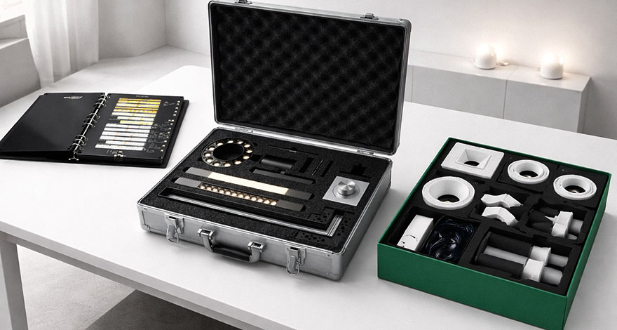Professional lighting sample kits for showrooms and resellers. Compare finishes, build quality and lighting performance with convenient Nuordic demo kits.