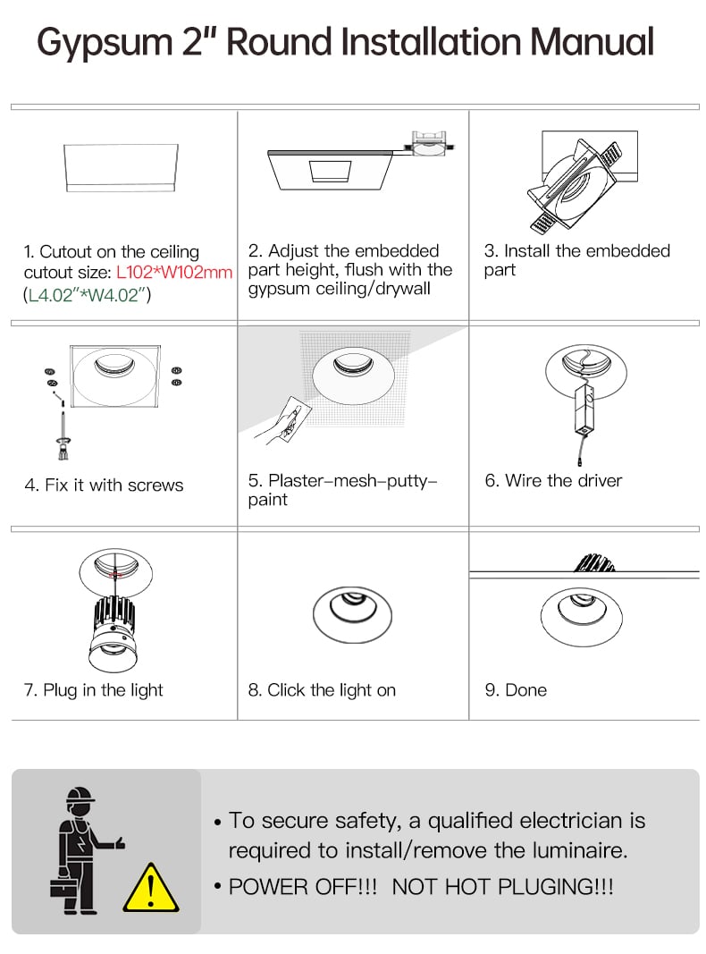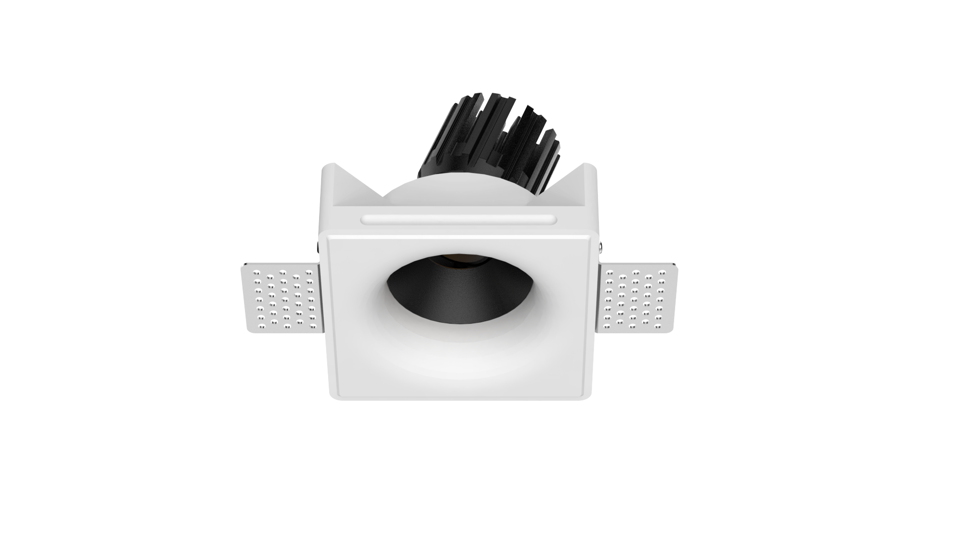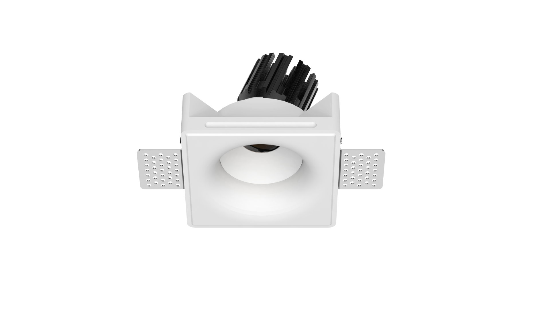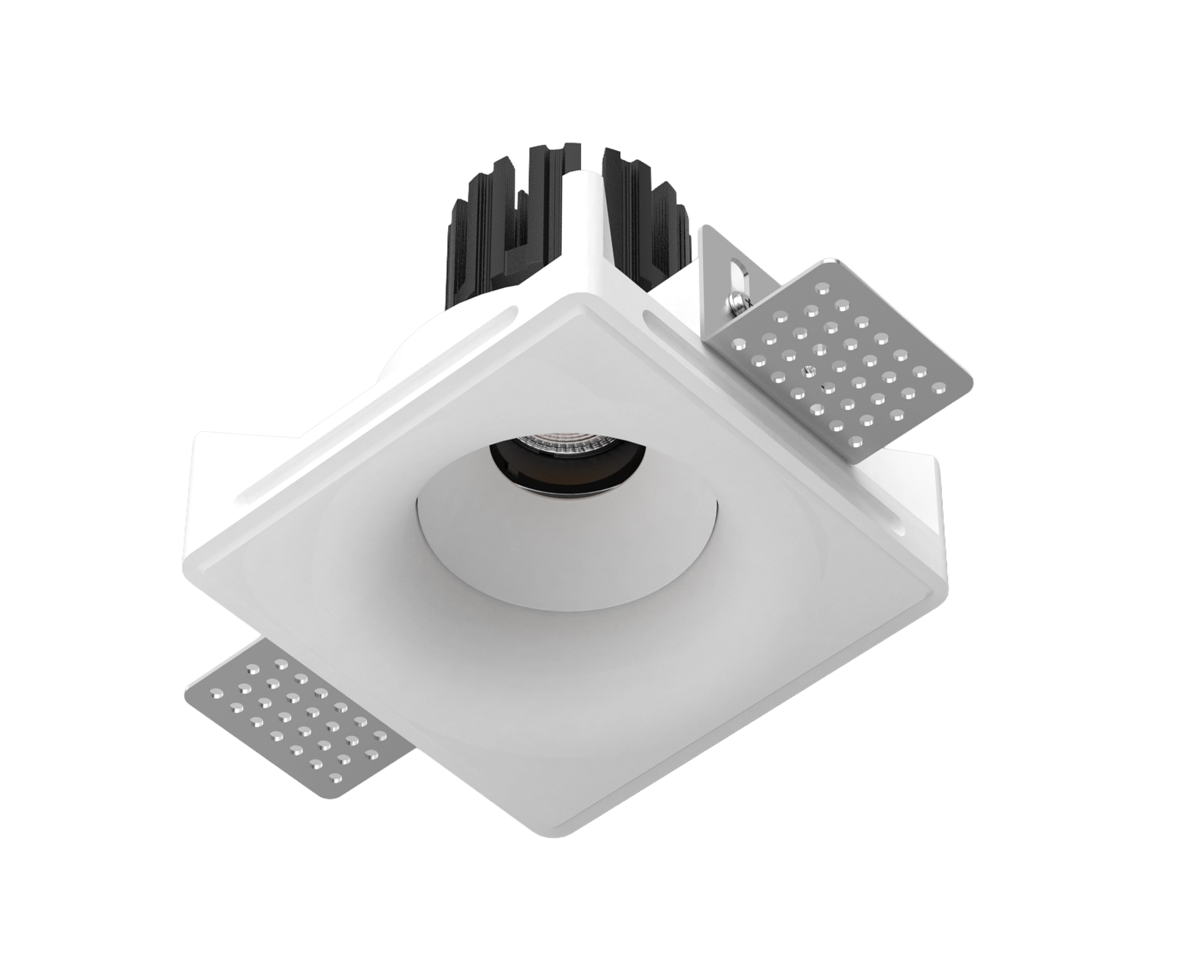 Thermal performance is handled by a cold-forged aluminum heat sink integrated into the lamp body, ensuring stable operation and long-term reliability. The split design allows for easier installation and future maintenance, even after the gypsum housing has been plastered and painted in place.