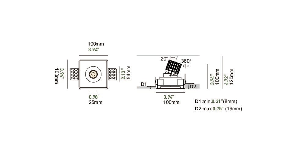 This model features an adjustable light module, allowing up to 20 degrees of tilt and full 360-degree rotation. This flexibility makes it suitable for accent lighting, artwork illumination, and directional applications where precise aiming is required. Despite its compact size, the downlight delivers strong performance through a high-quality COB LED paired with an optimized optic for clean beam definition and consistent output.