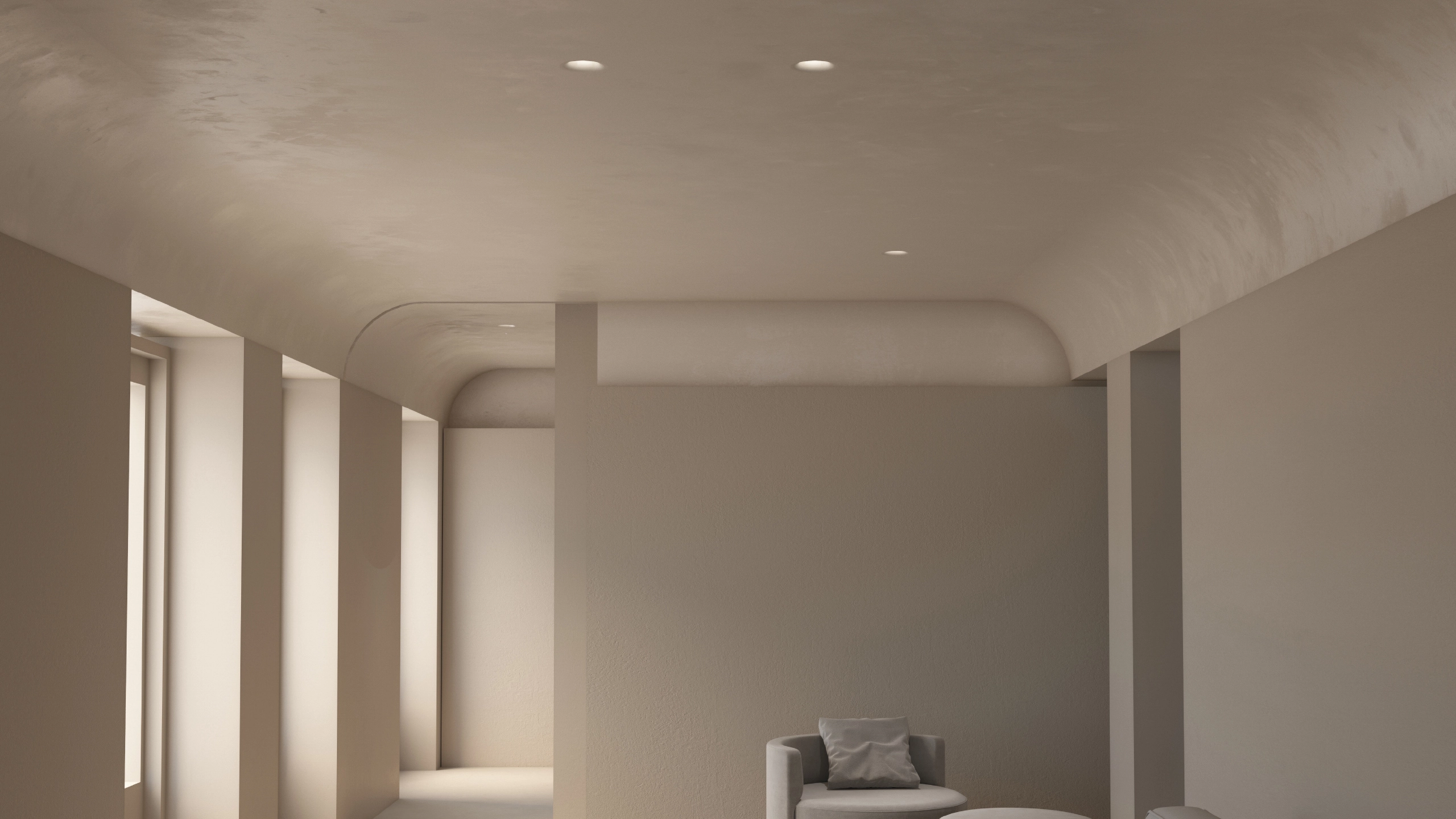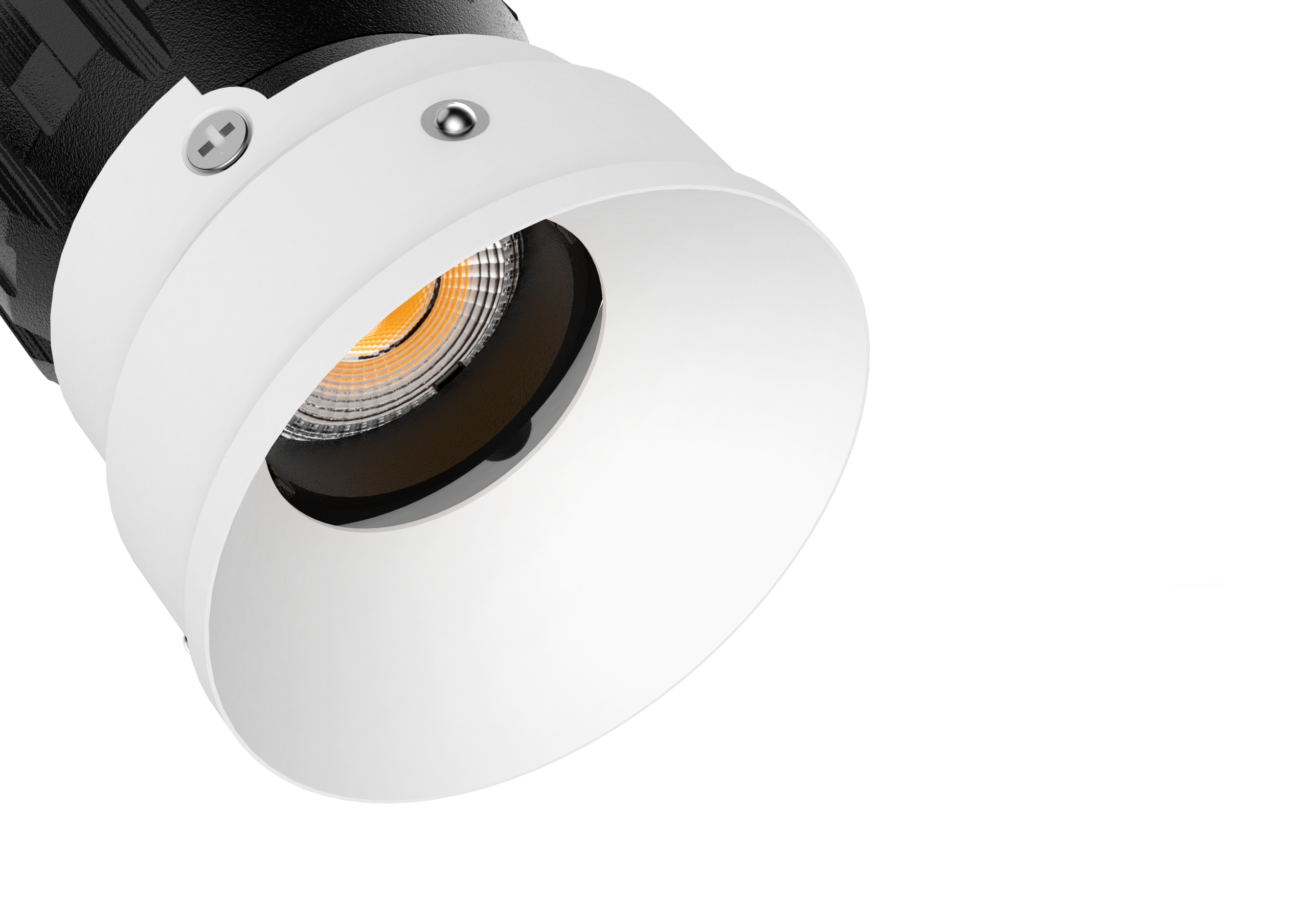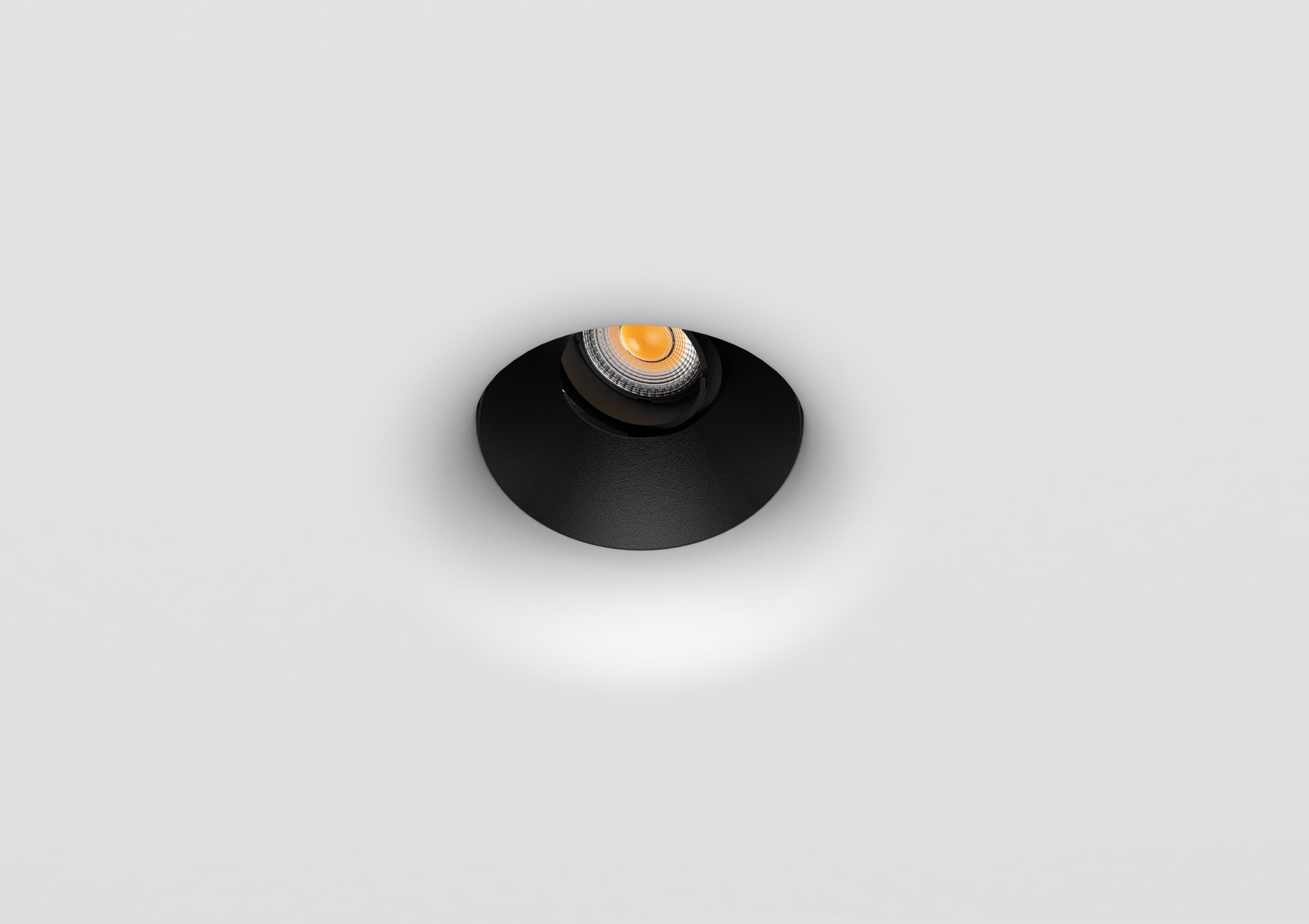 The concave geometry plays a key role in visual comfort. By recessing the light source deeper into the ceiling plane, glare is significantly reduced while maintaining focused, usable illumination. The result is a soft, controlled beam that highlights surfaces and objects without harsh cut-off or visual noise, making it ideal for living spaces, corridors, galleries, and hospitality interiors.