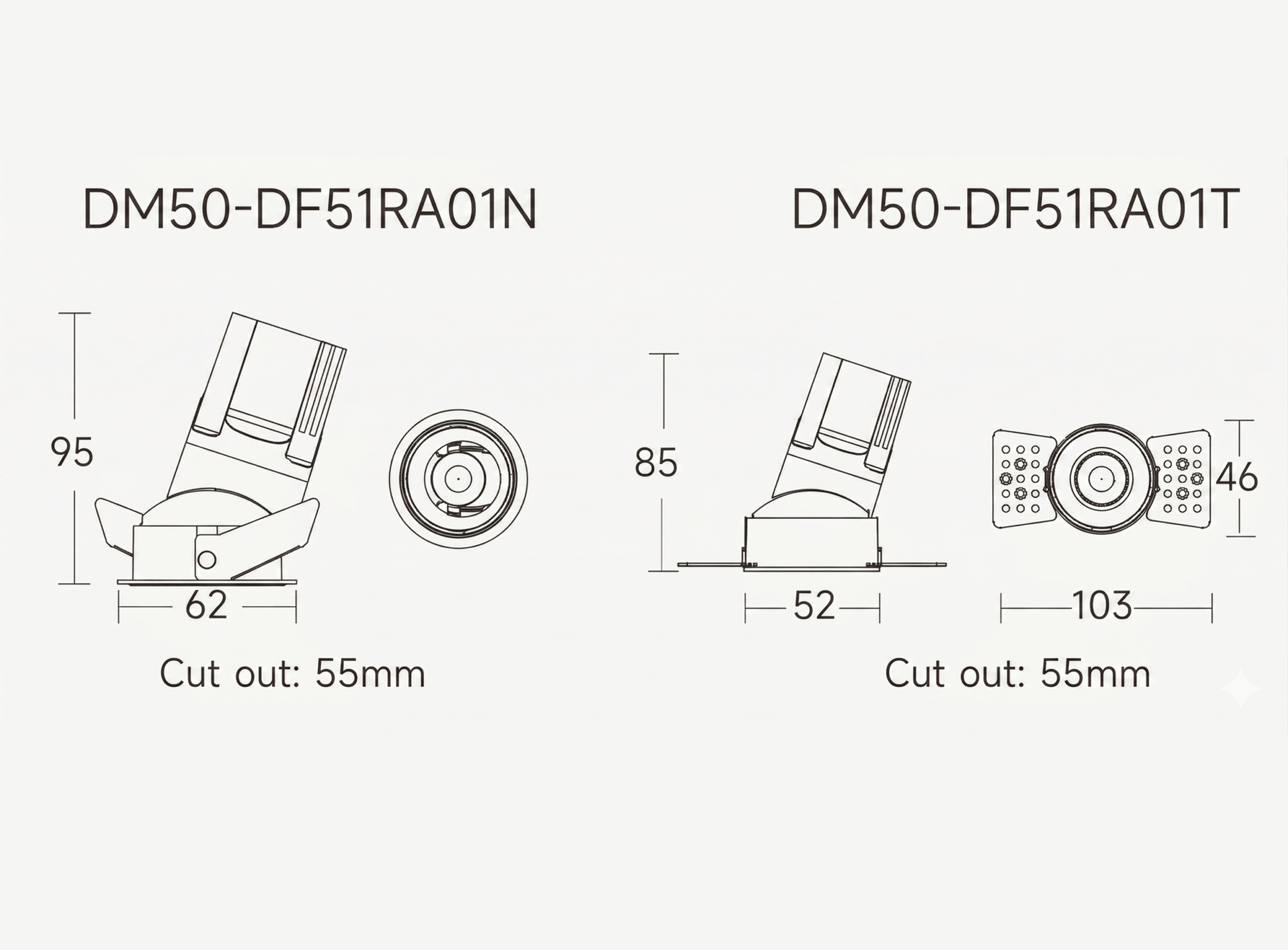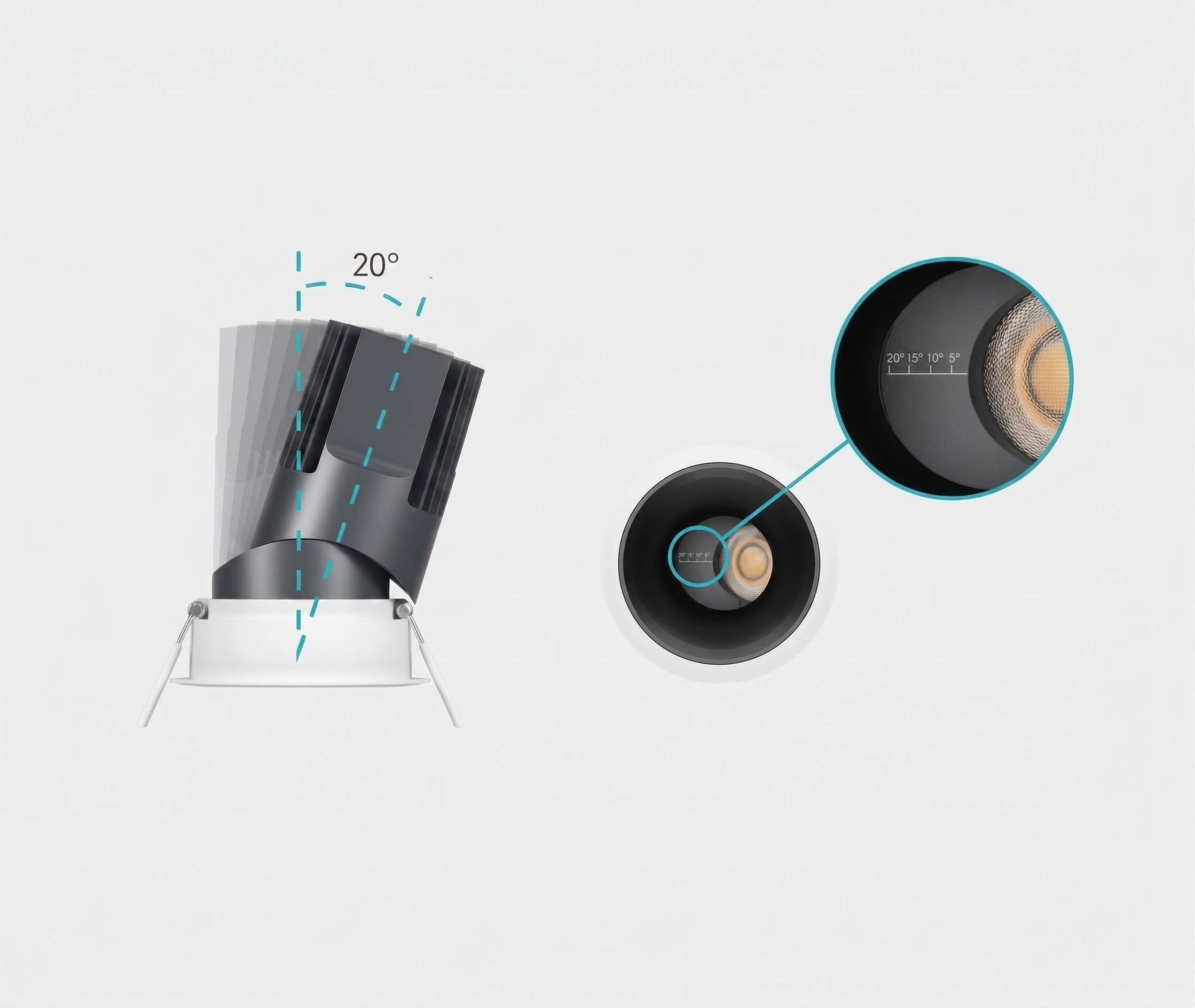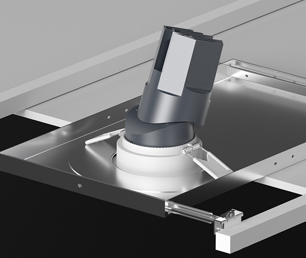 The mechanism itself reflects the same thinking. A bearing-assisted tilt delivers tactile, click-confirmed positioning, so aiming is deliberate rather than approximate. For installations where vibration or ceiling movement is a concern, an optional lock screw holds the aim permanently. The 50° cut-off angle keeps the source fully shielded, supporting excellent UGR performance in environments where visual comfort is non-negotiable.