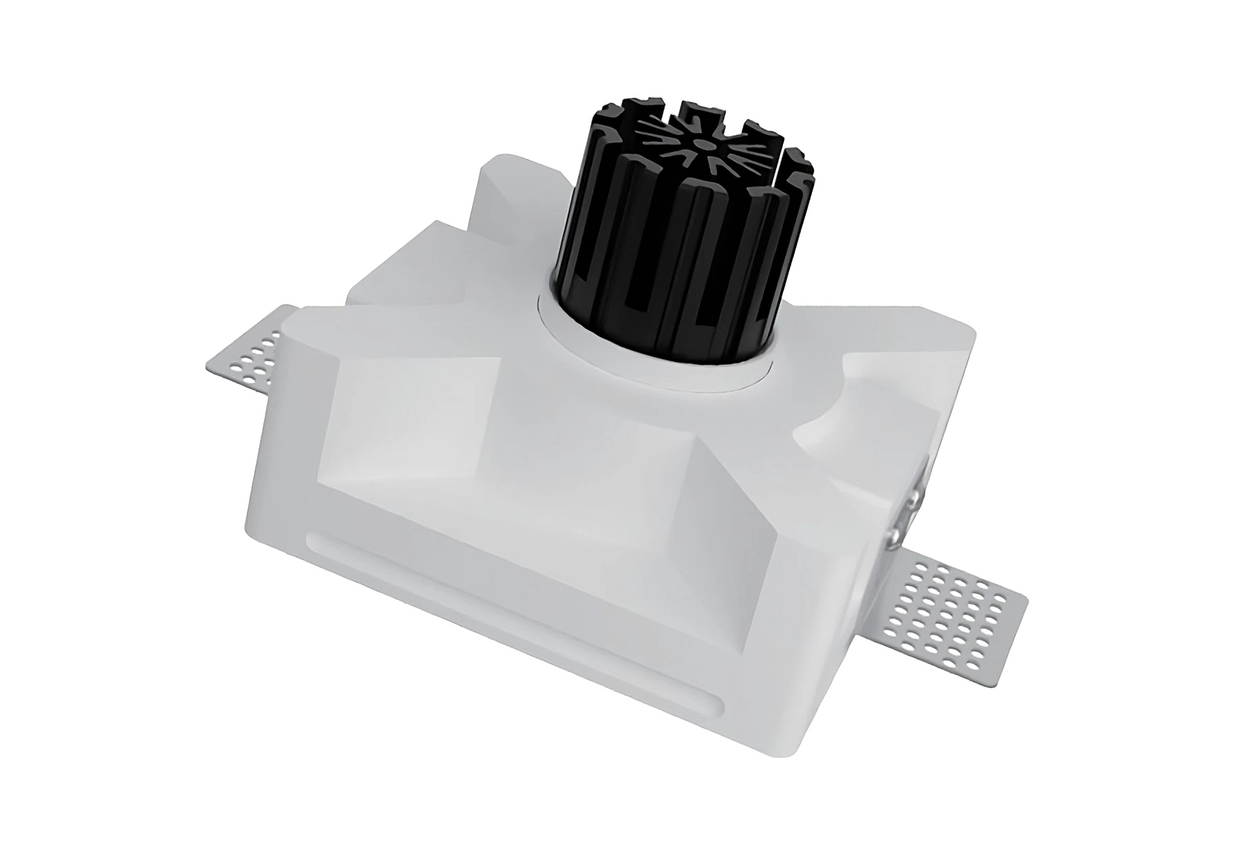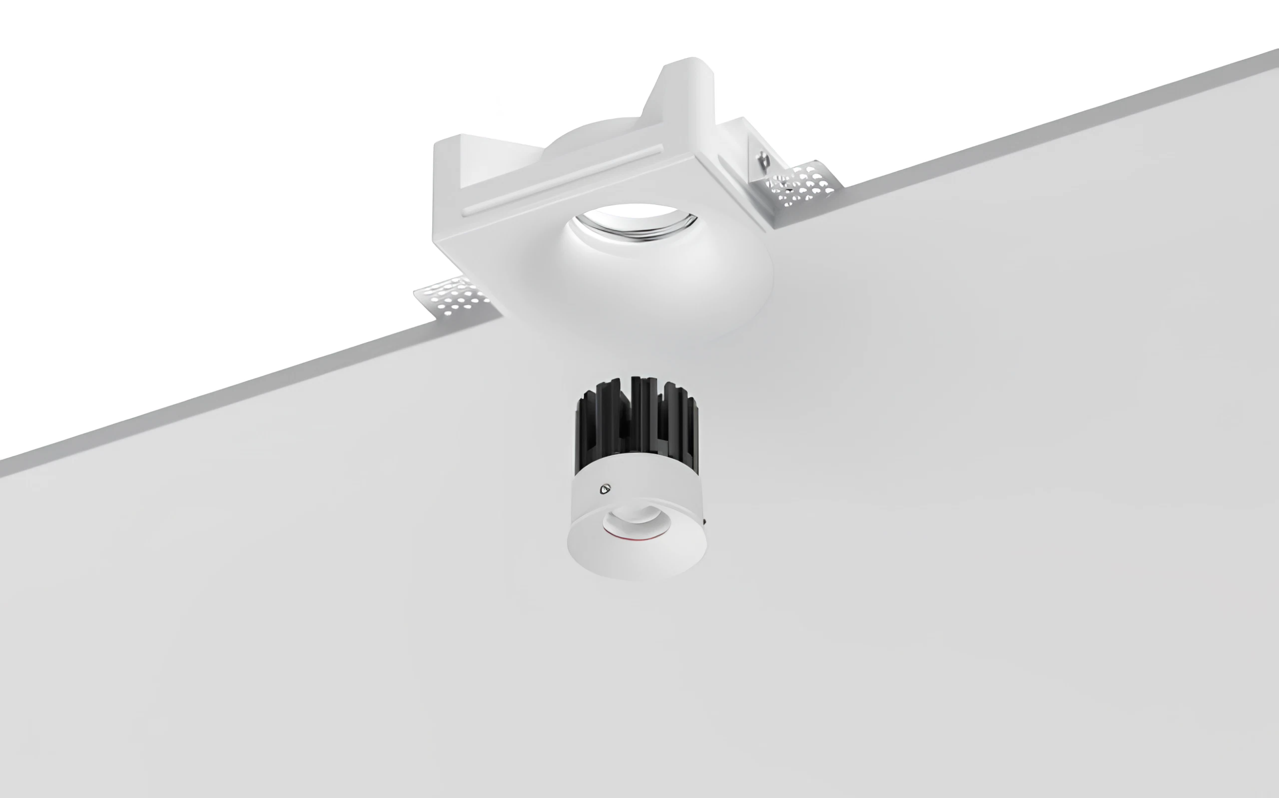 Thermal management is handled through an all-metal heat sink built into the light engine. Efficient heat dissipation protects the LED, stabilizes color, and supports long service life, which matters in plaster-in fixtures that are meant to stay put for years.