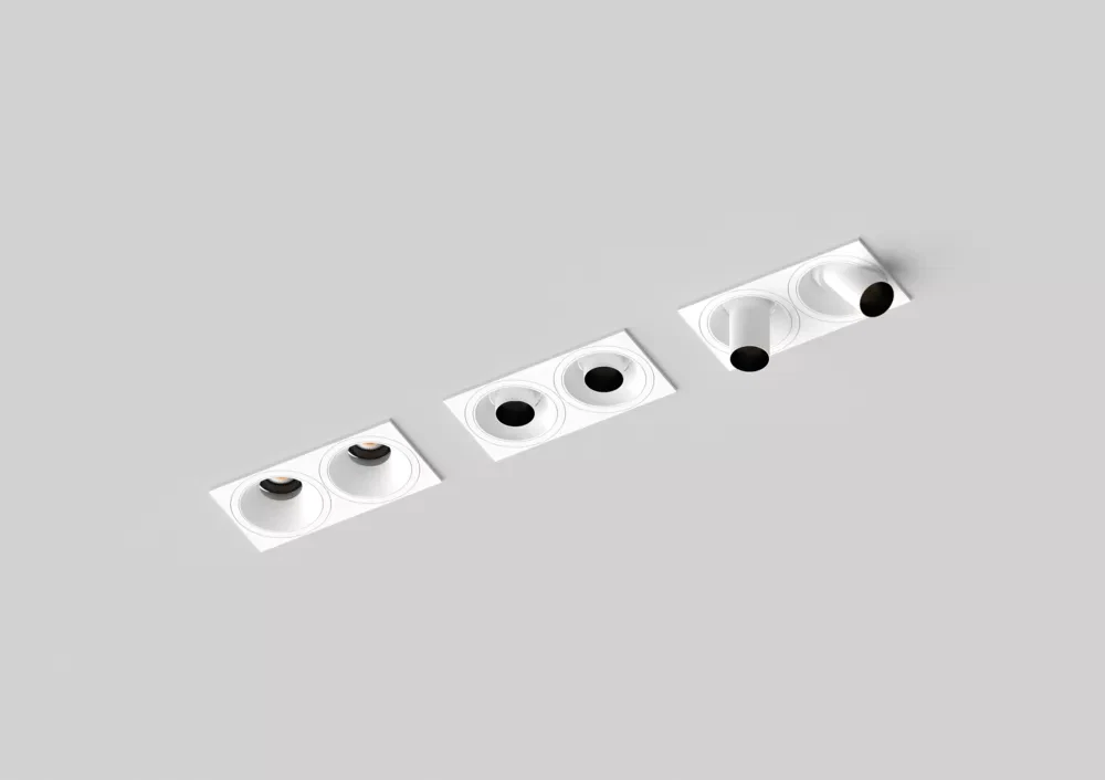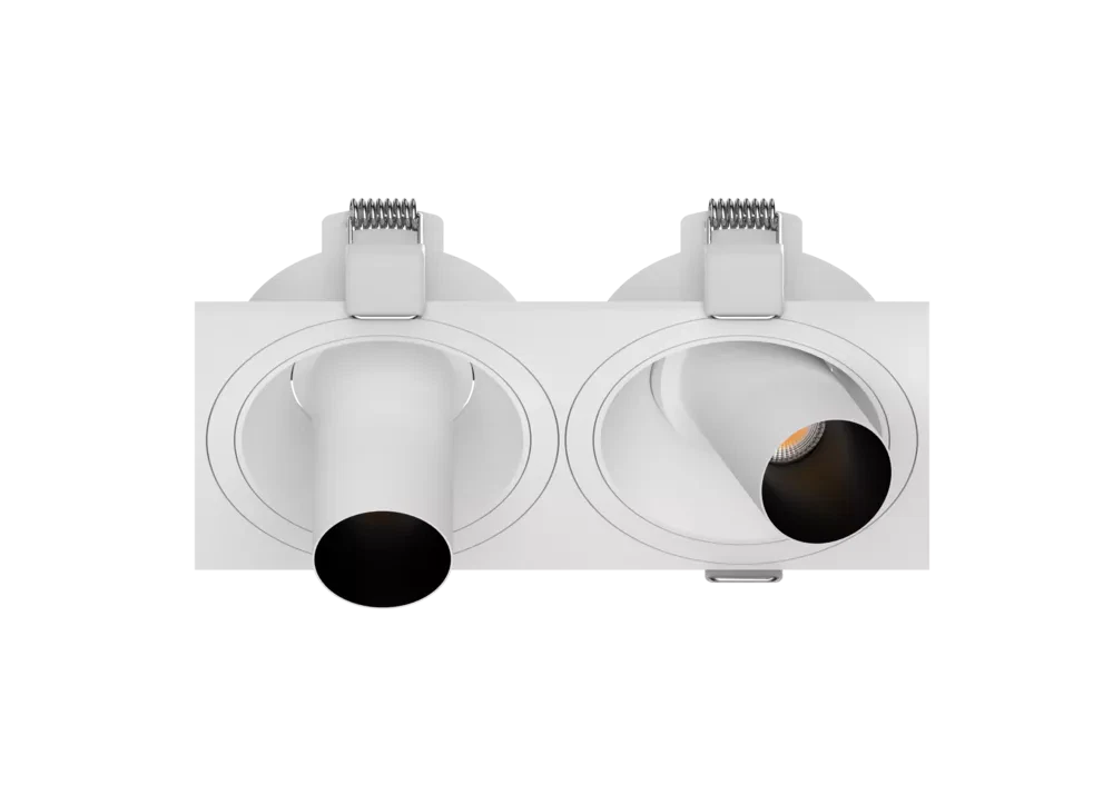 Available in black or white finishes, this double downlight integrates seamlessly into a wide range of interior styles. It is well suited for modern residences, retail environments, showrooms, offices, and other commercial spaces where precise, adjustable lighting is essential.