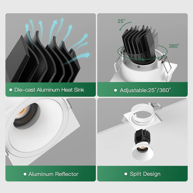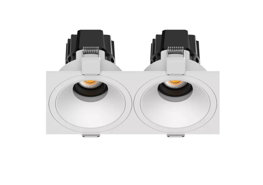 A compact yet powerful 3 inch recessed double downlight designed for spaces that demand flexibility, accuracy, and visual comfort. Featuring dual high-CRI COB light engines with full adjustability, it allows precise control over light direction while maintaining a clean ceiling appearance. The advanced anti-glare optical system delivers smooth, even illumination, and the durable aluminum body ensures reliable performance across residential, commercial, and retail environments.