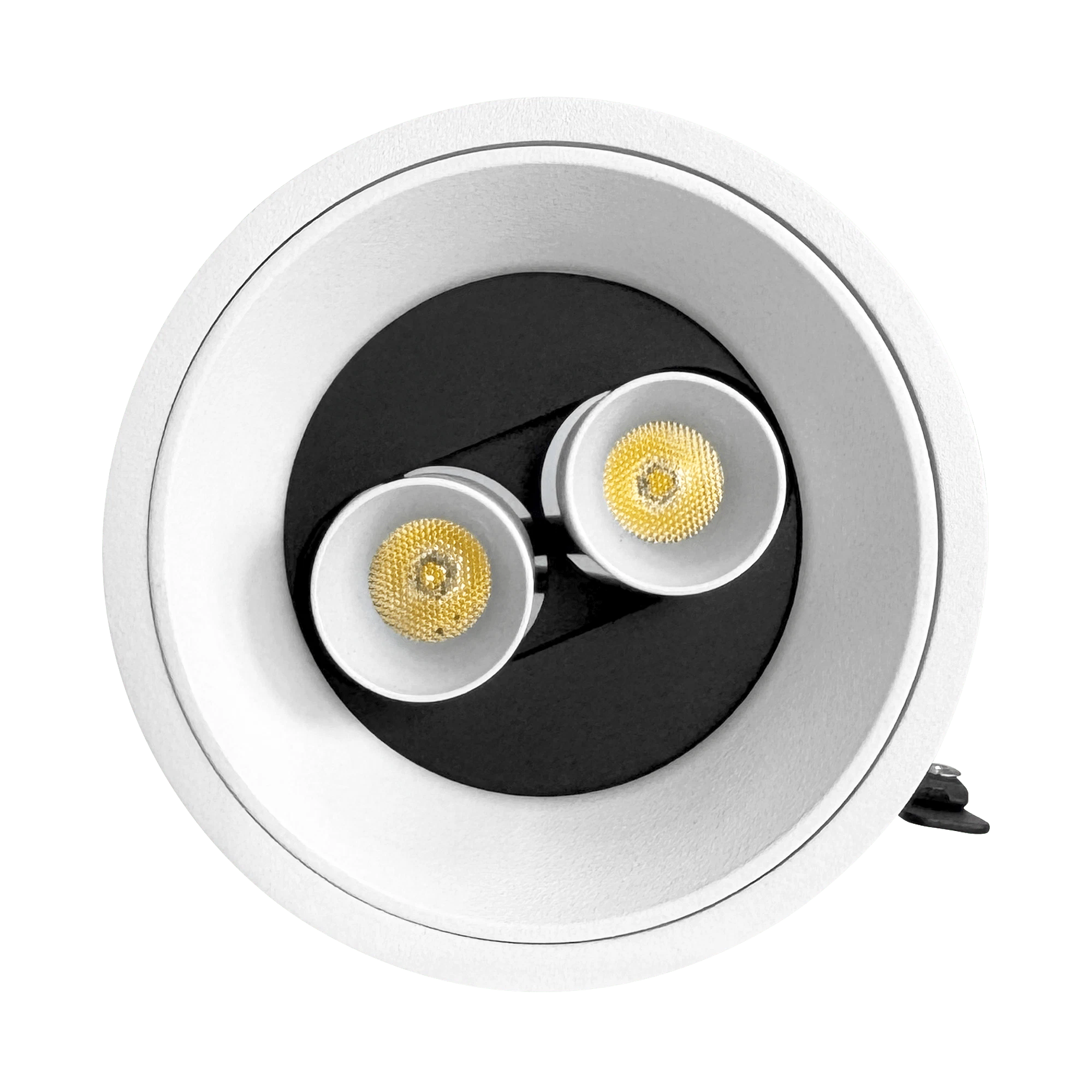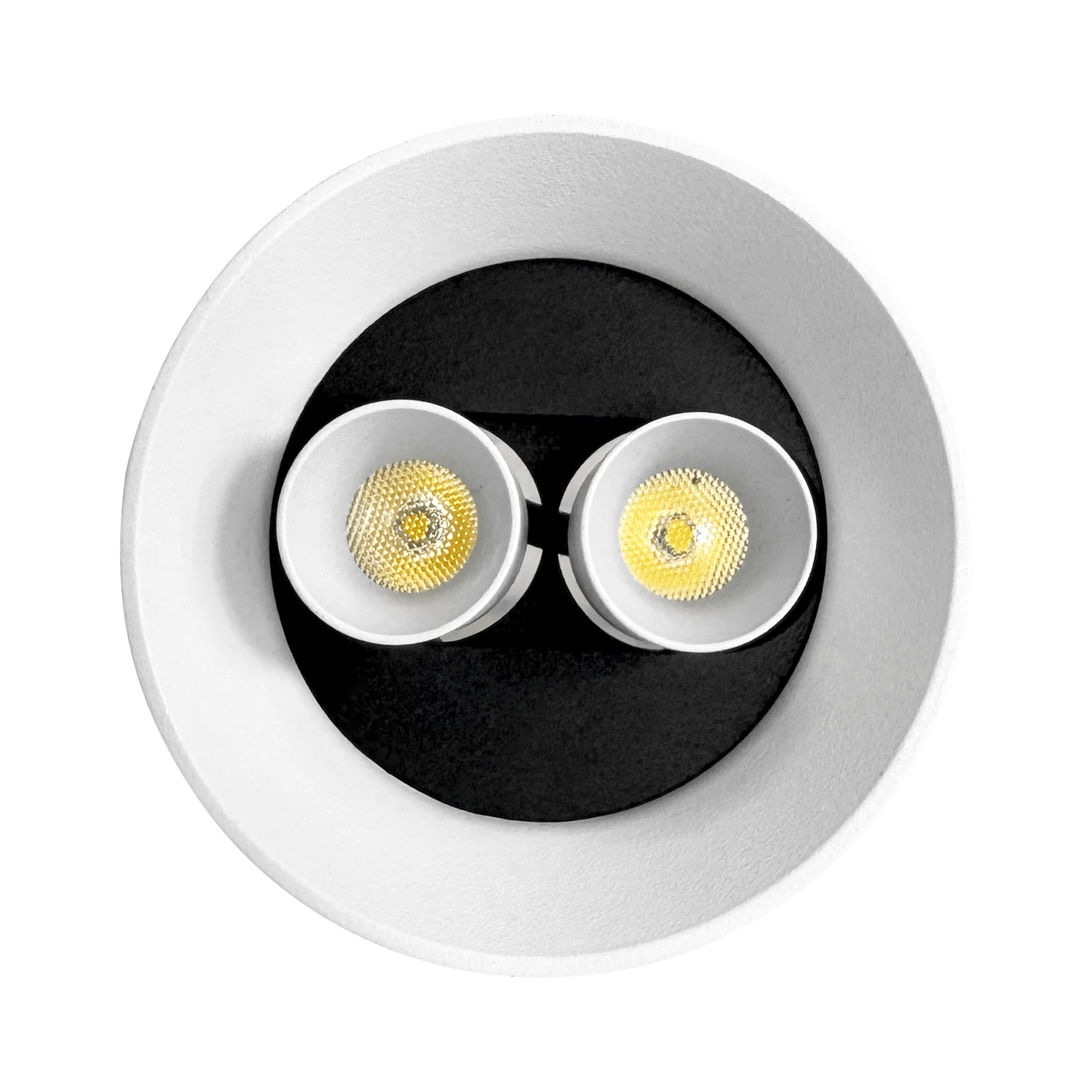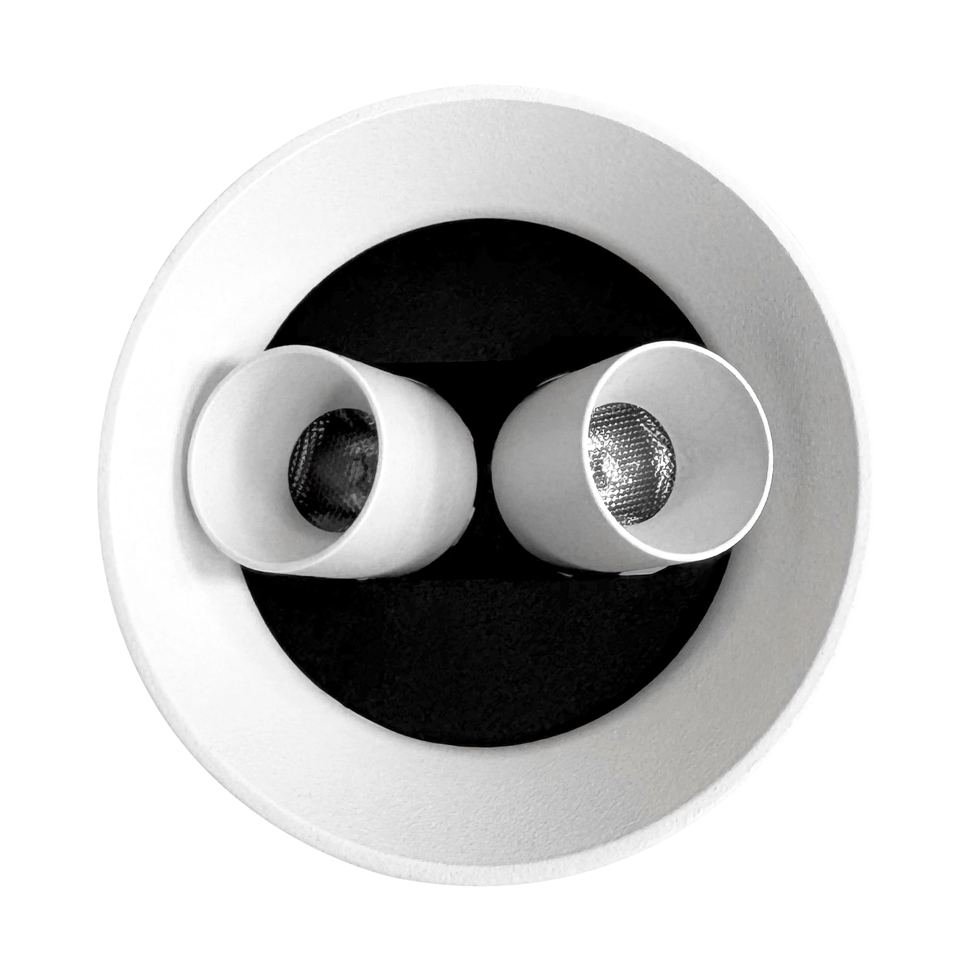 The Double Mini Spotlight offers an innovative lighting solution by integrating two independently adjustable spotlights into a single aperture. Each lamp head can rotate 360º horizontally and tilt 25º vertically, allowing for precise accent lighting that caters to a variety of settings such as residential, commercial, and hospitality spaces. Designed with a cold-forged pure aluminum heat sink and an aluminum reflector, this twin downlight ensures soft, uniform illumination while minimizing glare, providing optimal eye protection. The trimless installation creates a sleek, seamless appearance on ceilings, making the fixture as visually appealing as it is functional. Whether you’re looking to highlight architectural elements, artwork, or specific focal points, the Double Mini Spotlight delivers a versatile and efficient lighting solution.