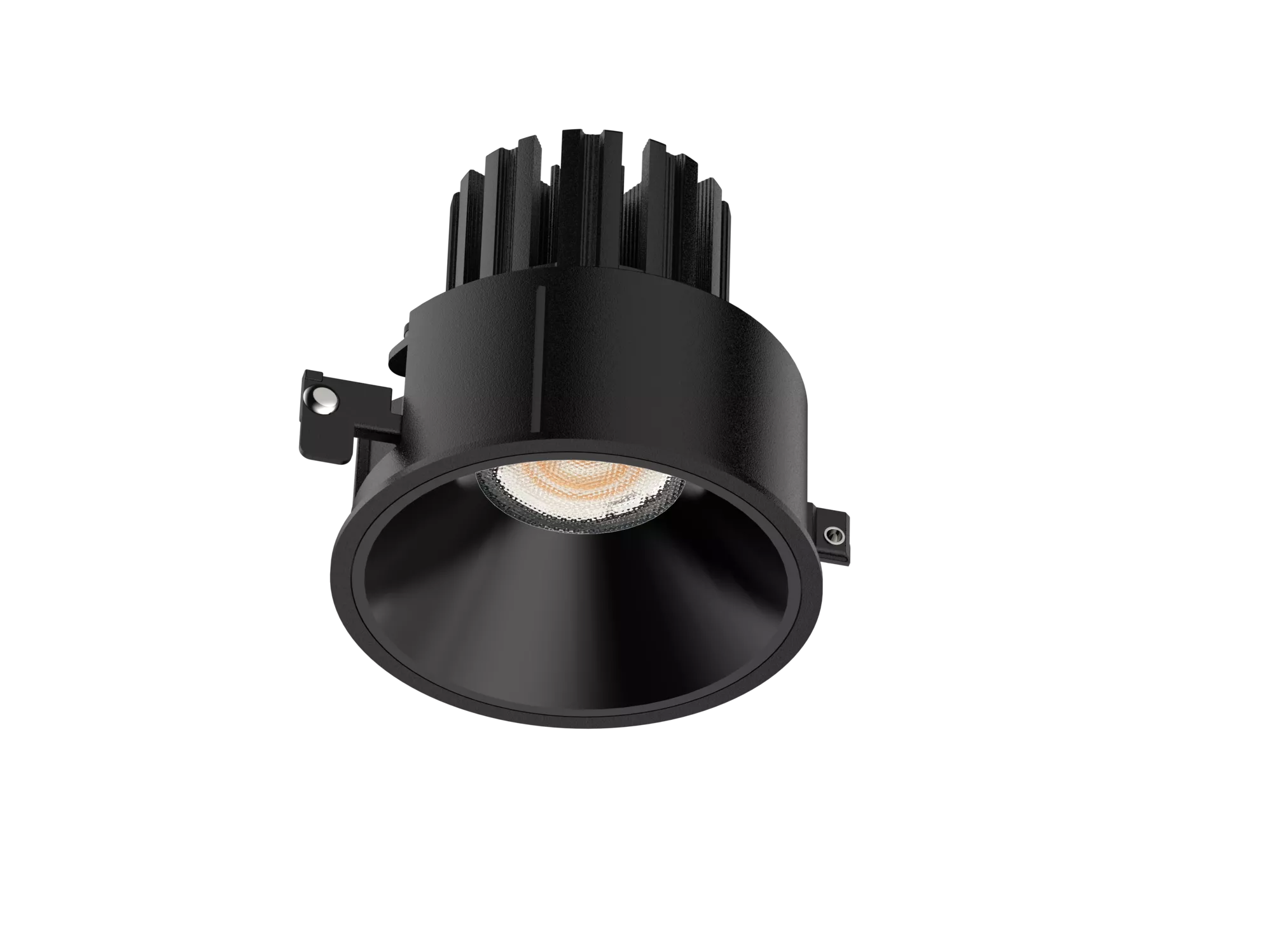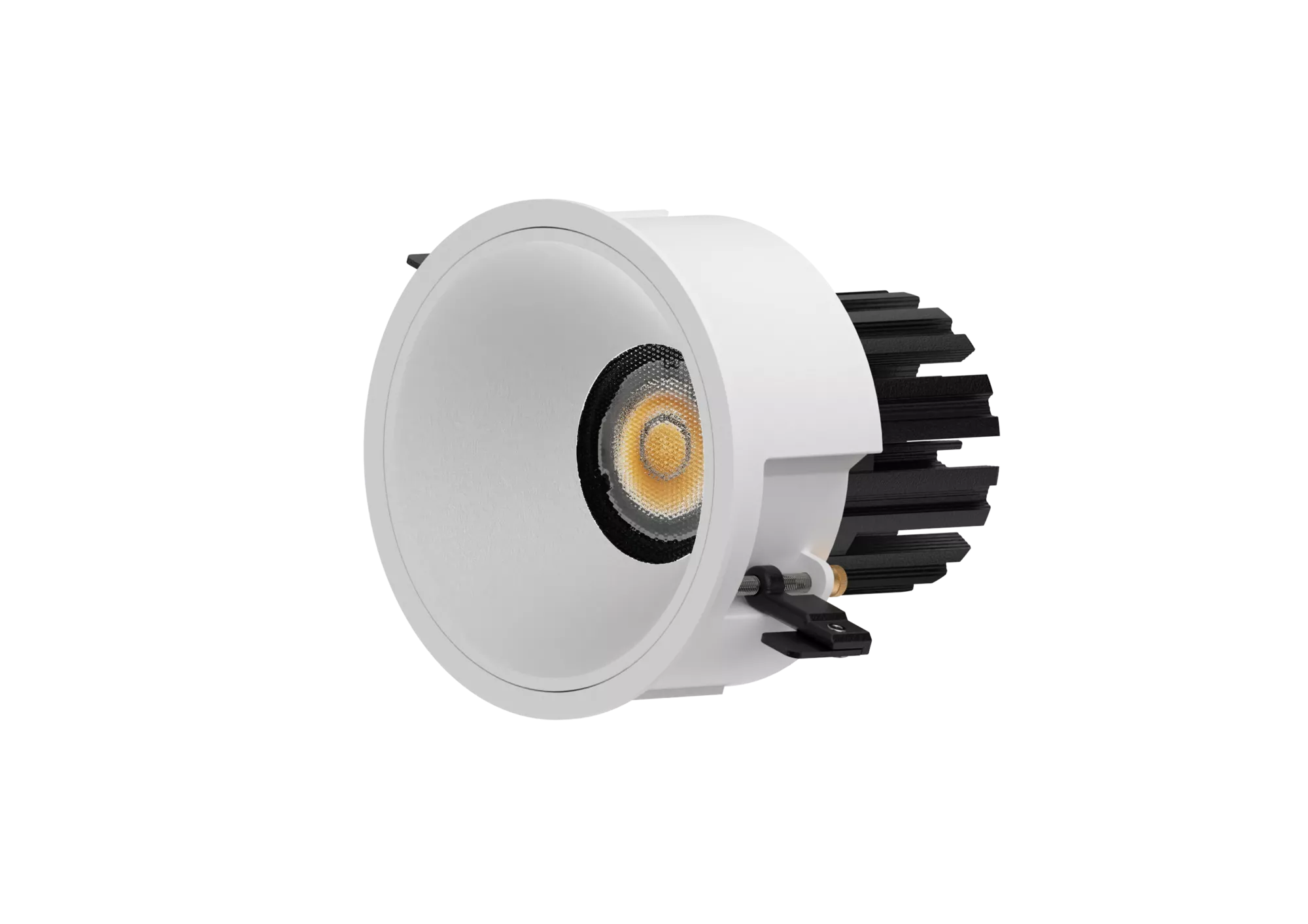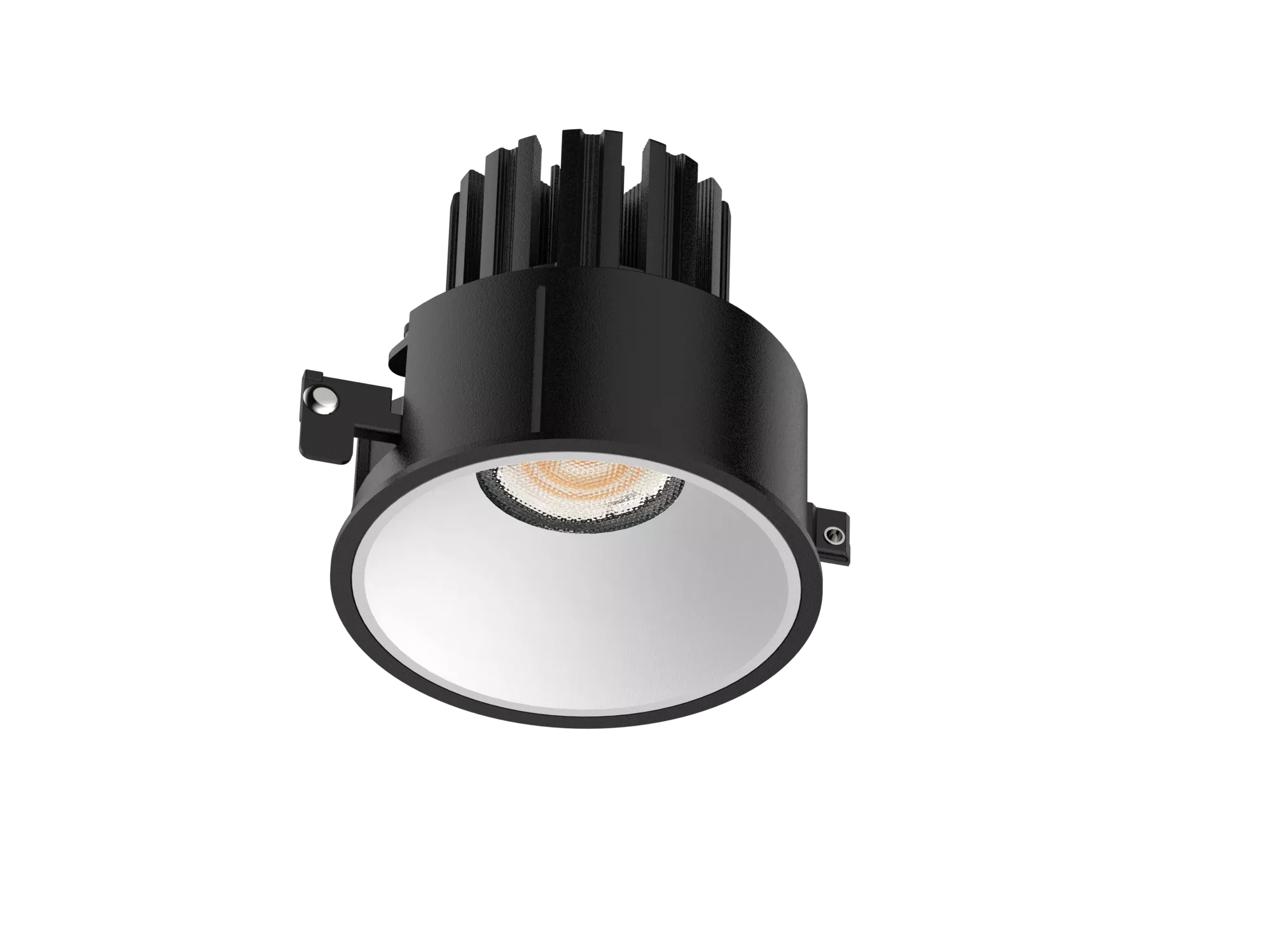 Because the optic is fixed, light placement is predictable and easy to plan. It is ideal for ambient grids, corridors, and spaces where uniform coverage matters more than aiming flexibility. The COB LED and precision reflector system produce a smooth beam with controlled falloff and strong cut-off, reducing glare and keeping light comfortable in everyday use. Multiple beam spreads are typically available, allowing the same fixture family to handle wider ambient duties or slightly tighter feature emphasis without changing trims across the project.