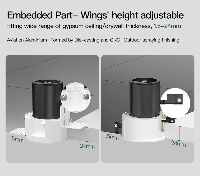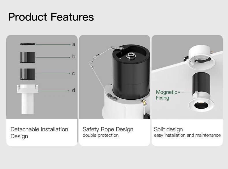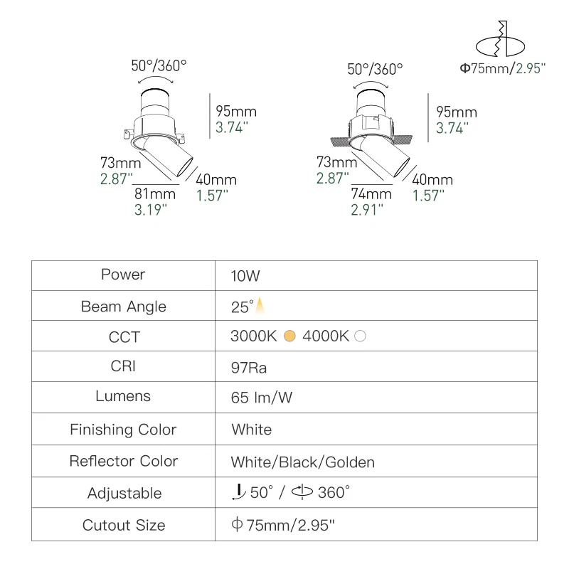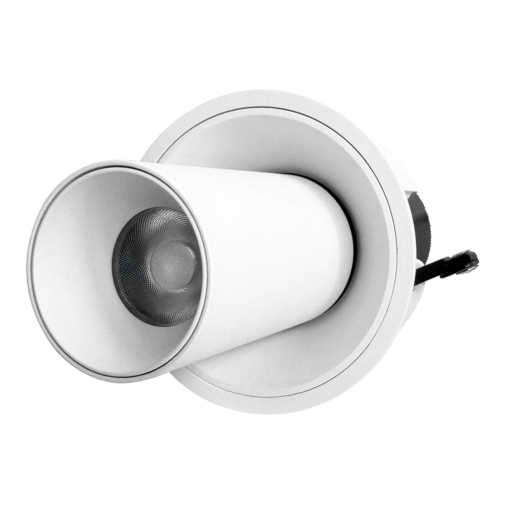 The Retractable Spot Light is a sleek, recessed spotlight engineered for glare-free, high-impact illumination. Its retractable design tilts up to 25°–75° for precise accenting of décor or architectural features, while the anti-glare lens delivers comfortable, soft lighting. Integrate seamlessly with Triac, 0-10V, or DALI dimming. Boasting a CRI of 97 and color temperatures ranging from 2700K to 5000K, this durable aluminum fixture offers accurate color rendering and efficient heat dissipation. Recessing smoothly into ceilings for a modern, refined look, it’s perfect for living rooms, offices, retail spaces, or galleries—bringing energy-efficient, flexible lighting to any environment.