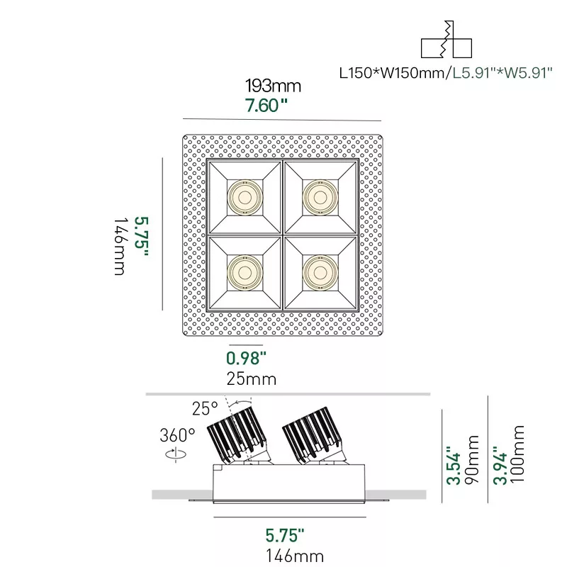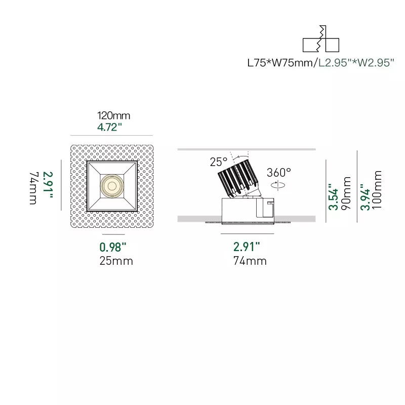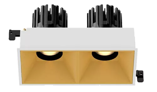 A 3 inch recessed square double adjustable downlight built for precise, flexible accent lighting in a clean architectural form. Available in both micro flange and trimless versions, it lets you choose either a subtle finished edge or a fully seamless ceiling look. Two independently adjustable heads allow accurate aiming onto artwork, shelving, feature walls, or layered focal points. High-CRI COB light engines, deep glare-control optics, and a cold-forged aluminum heat sink deliver stable output and long life. Ideal for luxury residential, retail, galleries, and hospitality interiors where one fixture needs to cover multiple targets.