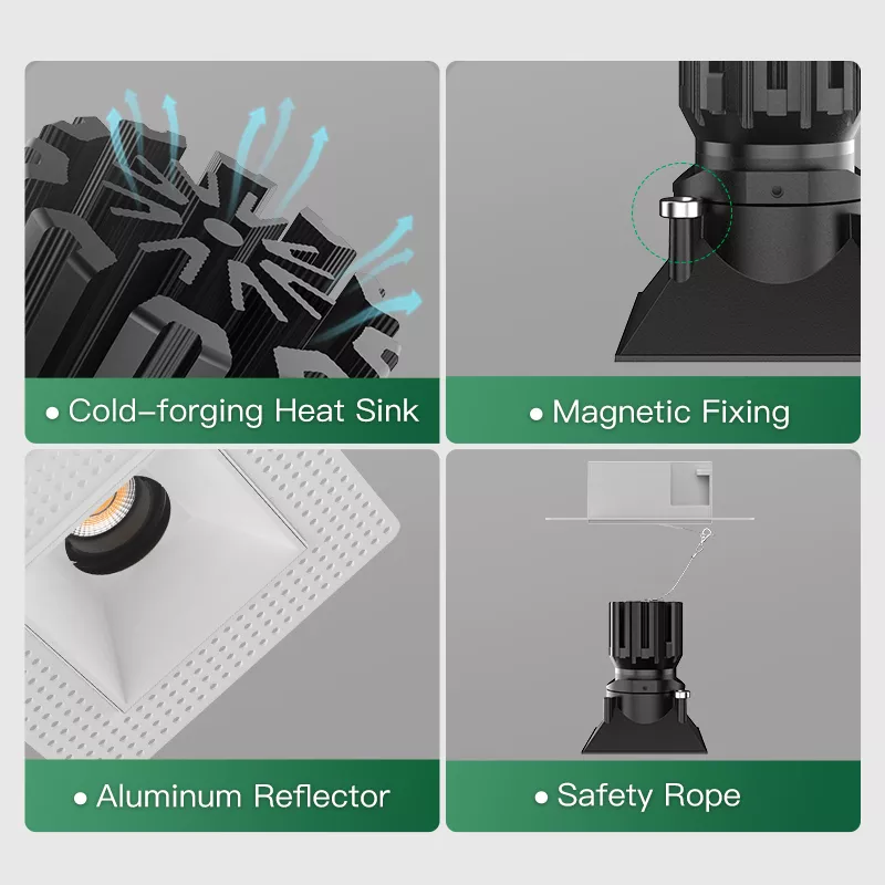Thermal performance is handled through a cold-forged aluminum heat sink that dissipates heat efficiently. This reduces LED stress, supports stable lumen output, and helps maintain consistent color over years of use, which matters a lot in compact multi-head fixtures.