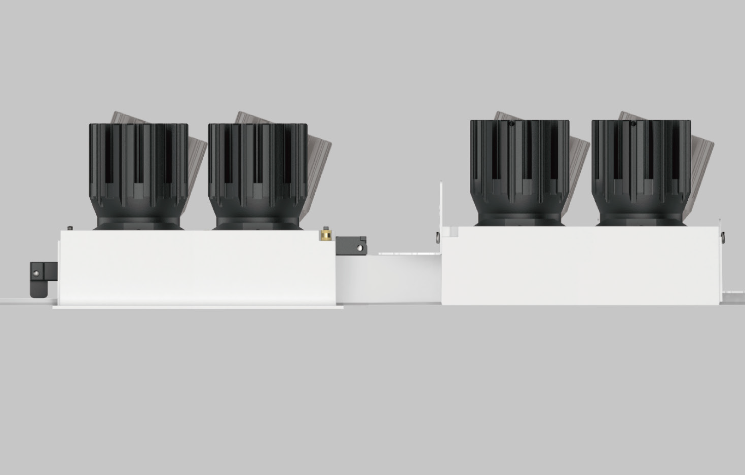 Each of the two heads adjusts independently with smooth tilt and full rotation. That lets you aim light onto two separate features from a single cutout, which is perfect for paired artworks, a wall and a niche, or two zones inside an open space. If the room layout changes later, you can re-aim the heads instead of adding new fixtures, keeping the ceiling consistent.