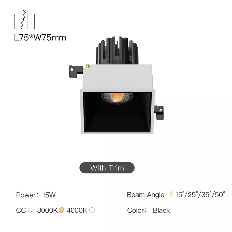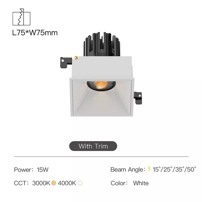 Inside, the fixture uses a high-quality COB LED paired with a precision lens and aluminum reflector. This optical system concentrates light evenly, avoids harsh hotspots, and keeps glare under control, so the beam reads soft and refined rather than sharp or distracting. Multiple beam spreads are typically available, letting you spec the same fixture for ambient layers or tighter accents without changing the ceiling style.