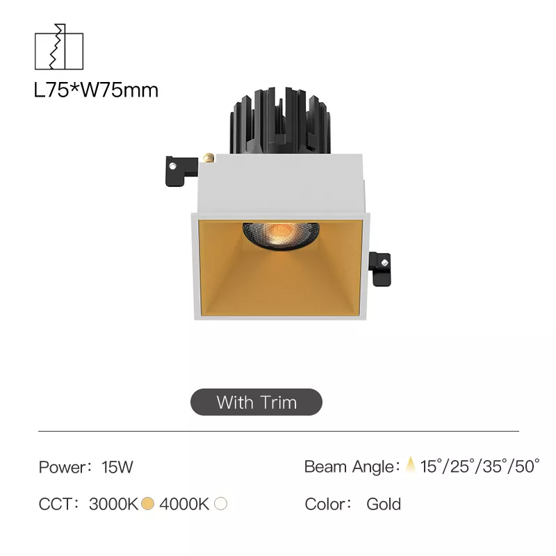 A clean 3 inch recessed square fixed downlight built for moisture-prone interiors that still need a sharp architectural ceiling. The fixed beam delivers consistent, predictable illumination, while the IP44 rating protects against humidity and everyday splashing, making it a dependable choice for bathrooms (outside shower zones), kitchens, spa corridors, and covered soffits. A cold-forged aluminum heat sink keeps the COB LED stable over time, and deep glare-control optics produce a smooth, comfortable beam. Trimless square finish, magnetic trim attachment, and split housing make installation and future servicing fast and tidy.