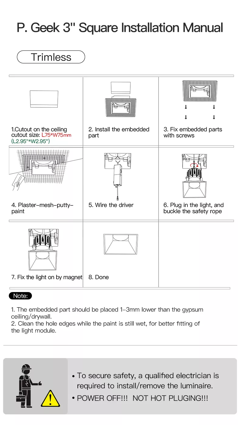 3 inch trimless square recessed profile