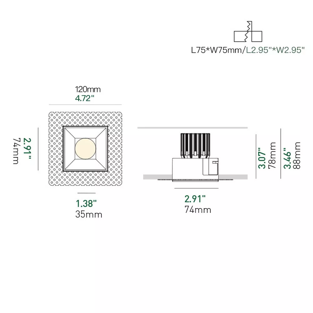 • 3 inch trimless square recessed profile