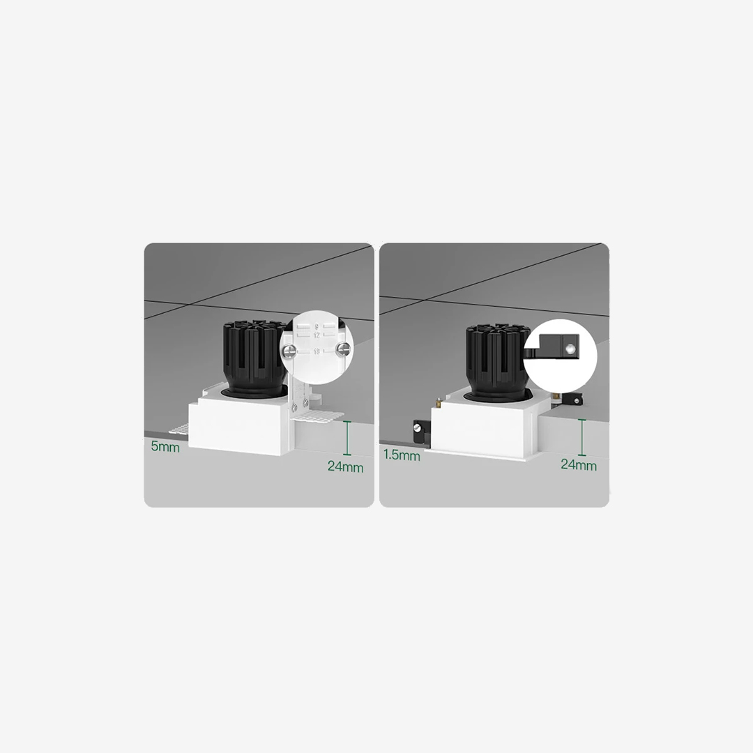 Installation is straightforward. The magnetic trim and split-body design let installers rough-in the housing first, then finish with the light module later, which keeps the process clean during final drywall and paint stages. Servicing down the line is simple because the module can be accessed without damaging the ceiling.