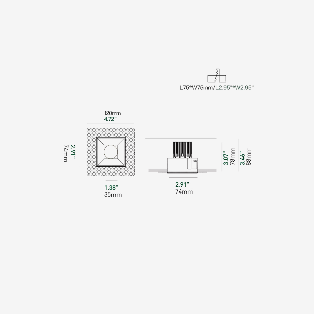 3 inch trimless square recessed profile