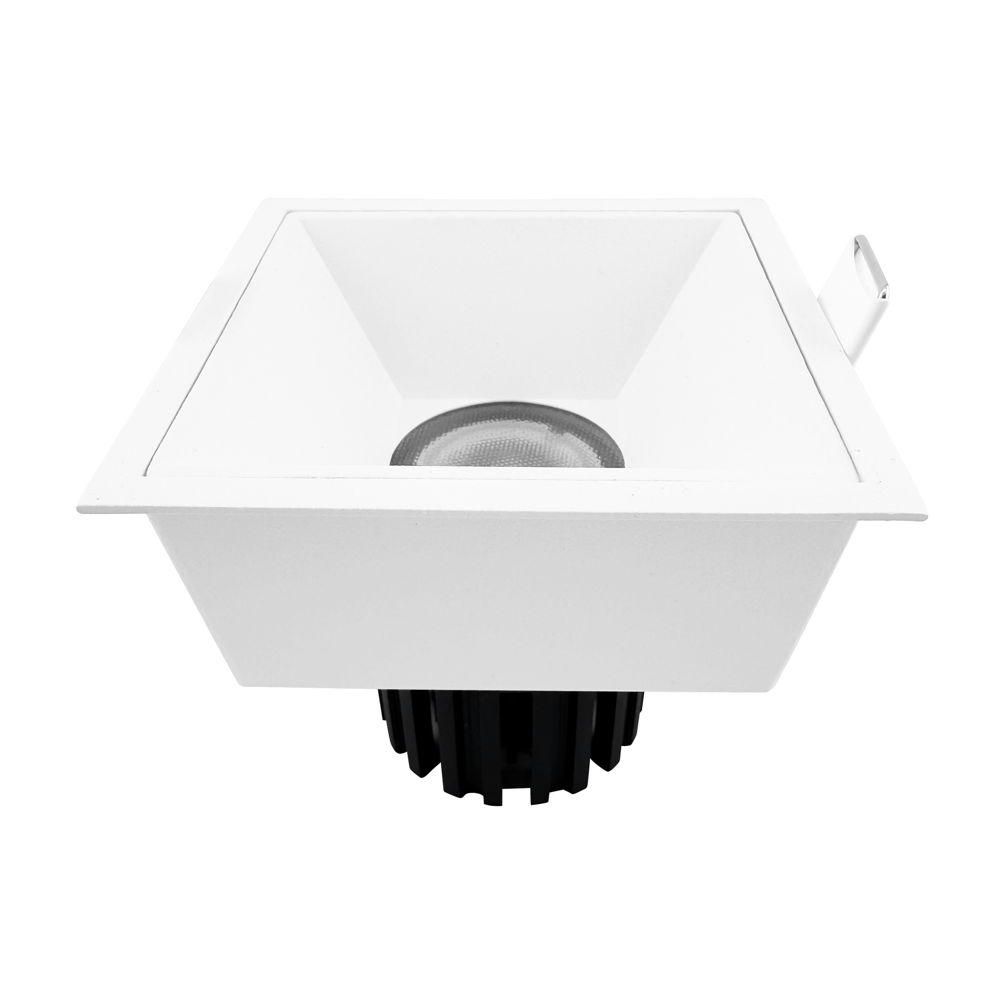 The square trimless profile gives a crisp, modern ceiling look that fits luxury architecture and contemporary exteriors. Because the optic is fixed, the lighting plan stays uniform and predictable, which is especially important in outdoor walkways and wet interiors where even spacing and consistency matter more than adjustable aiming.