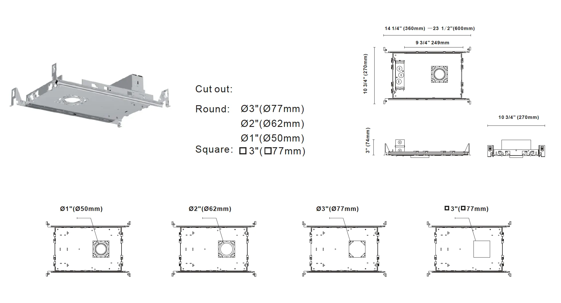 The IC Box and Mounting Bracket is the perfect solution for securely housing and installing 3 to 1-inch downlights, ensuring safe and efficient operation in various ceiling applications. Designed for insulated ceiling (IC) applications, this box provides superior thermal protection, preventing overheating and enhancing the longevity of your downlights. The included mounting bracket allows for easy and precise installation, offering flexibility in positioning while maintaining a clean, professional finish. Constructed from durable, fire-rated materials, this IC box is built to meet safety standards and protect both residential and commercial spaces. Compatible with a range of downlights, it offers a seamless fit, making it an essential component for new construction and retrofit projects.