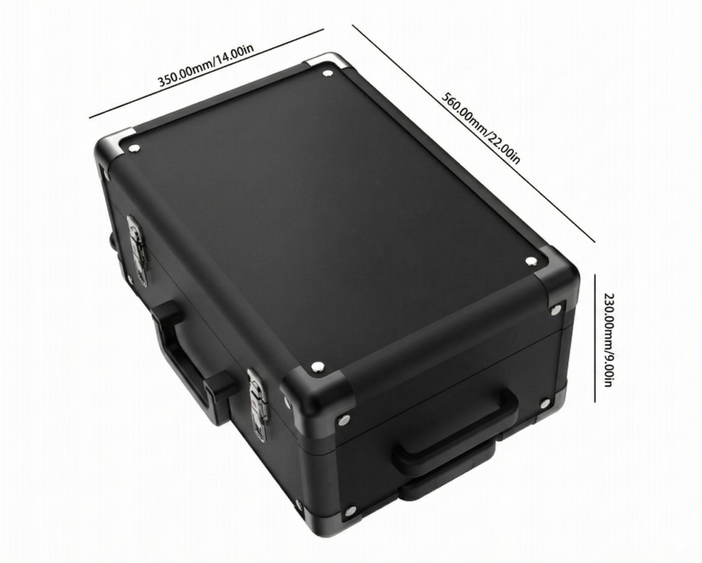 The exterior is a hard shell, travel ready case designed to handle frequent use. Strong latches, reinforced corners, and a carry handle make it reliable for daily work. Whether you are visiting a luxury home build, pitching a retail project, or meeting a design firm, this kit keeps your sample set protected and your presentation sharp.
