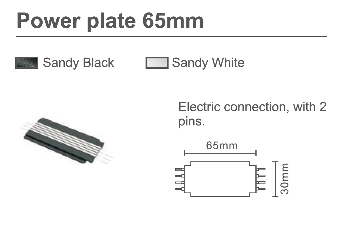 The 65mm Electric Power Plate Connector for Standard Magnetic Track ensures a reliable electrical connection for recessed, surface, and pendant magnetic tracks. Available in black or white.