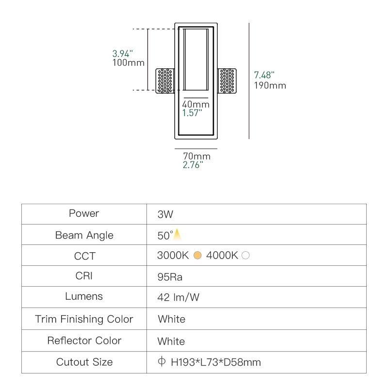 The fixture uses a gypsum housing paired with an aluminum light body to manage heat properly and ensure long-term reliability. This combination supports stable output and consistent color over time, which is essential for plaster-in fixtures that are not meant to be replaced frequently.