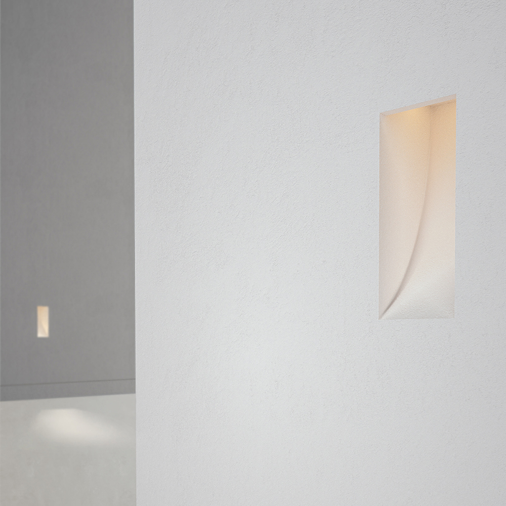 A trimless gypsum square step light designed for seamless integration into walls, stair risers, and architectural surfaces. The plaster-in gypsum body disappears into the finish, leaving a clean square aperture that delivers soft, directional light along floors and steps. With a compact recessed profile, high color rendering, and carefully controlled beam, it provides safe, low-glare guidance lighting without visual clutter. Ideal for luxury residential stairs, corridors, feature walls, and design-driven interiors where the light should feel built into the architecture.
